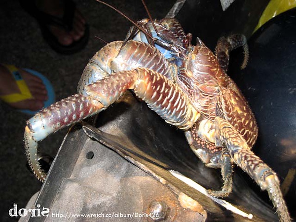 騎車的路上也巧遇了很多貴賓,尤其導遊說椰子蟹幾乎是遇不到,竟然被我們遇到了,但由於牠是保育類動物,所以導遊很想把牠帶回去養一天(聽說這是違法的,不過回去之後老闆把椰子蟹放在洗衣機裡面,隔天早上就逃走了~~)