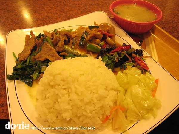 逛完買完名產天都黑了,我們接著往下騎,看到一間菲哥的店,賣一些平價的快炒跟套餐,我們就叫了鹿肉燴飯跟鹿肉炒麵,來的時候嚇我一大跳,好大的兩盤,滿滿至少2人份以上~結果當然吃不完...好撐...>_<