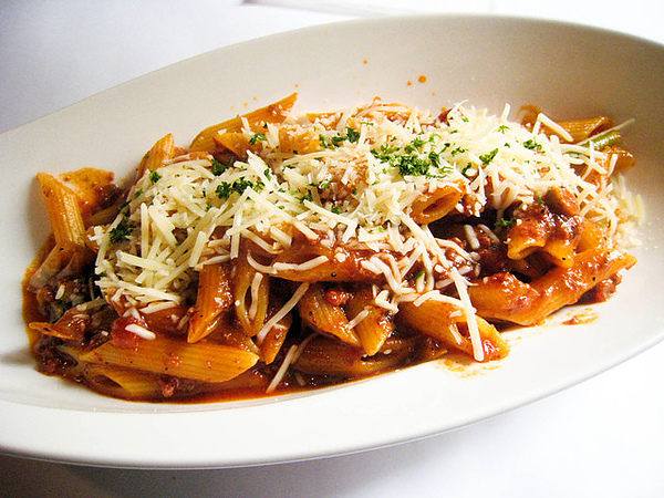 因為我怕份量太多會暴食,而我又想吃管麵,所以點了一個最含蓄的蕃茄波隆肉醬管麵(應該是這樣沒錯吧?)結果餐送來時其他三位小姐都給了我一樣他們的配料,所以我好撐.......@@