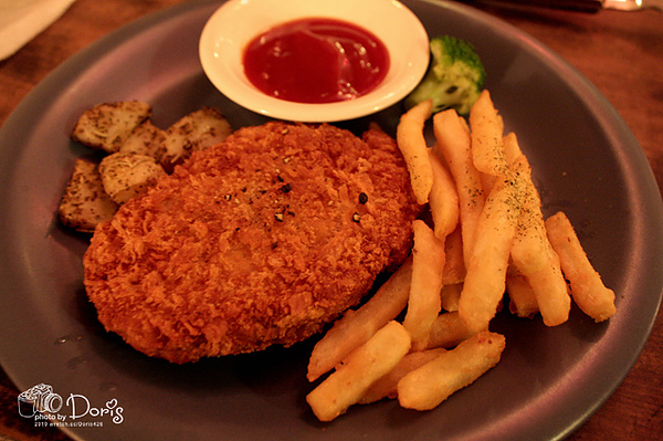 今天是我們的第一餐,我點的排餐是起司豬排,章魚哥點南非香腸,排餐價格挺合理,NT.200/人,所以我要認真做筆記&吃光光