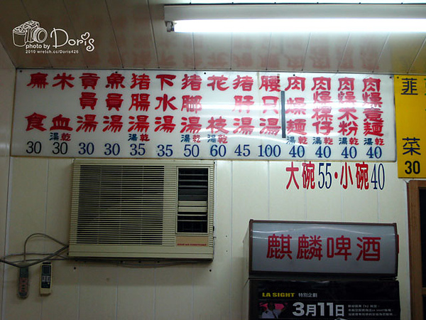 店面的牆壁上還掛了看起來歷史很悠久的價目,很健談的老闆說,這有歷史了,老闆問我由這塊招牌可以看出什麼?我回答:「很復古呀」 他說:「可以看出來以前的人不太識字,字都寫錯了XD」